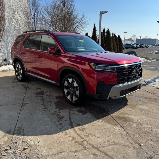 We are your Downriver Dealer! Proudly Serving Southgate, Detroit, Grosse Ile, Wyandotte, Taylor, Allen Park, Dearborn, Monroe and our Southeast Michigan Communities! Check out all these great options AWD, 12 Speakers, 3rd row seats: split-bench, 4-Wheel Disc Brakes, ABS brakes, Adaptive Cruise Control: Adaptive Cruise Control (ACC) with Low-Speed Follow, Air Conditioning, Alloy wheels, Apple CarPlay/Android Auto, Auto High-beam Headlights, Auto-dimming door mirrors, Auto-dimming Rear-View mirror, Automatic temperature control, Blind Spot Information (BSI) System warning, Bose Premium Sound System, Brake assist, Bumpers: body-color, Compass, Delay-off headlights, Driver door bin, Driver vanity mirror, Dual front impact airbags, Dual front side impact airbags, Electronic Stability Control, Emergency communication system: HondaLink, Exterior Parking Camera Rear, Four wheel independent suspension, Front anti-roll bar, Front Bucket Seats, Front Center Armrest, Front dual zone A/C, Front fog lights, Front reading lights, Fully automatic headlights, Garage door transmitter: HomeLink, Heads-Up Display, Heated and Ventilated Front Bucket Seats, Heated door mirrors, Heated front seats, Heated rear seats, Heated steering wheel, HondaLink, HondaLink Subscription Services, Illuminated entry, Knee airbag, Lane departure: Lane Keeping Assist System (LKAS) active, Low tire pressure warning, Memory seat, Navigation system: Google Maps, Occupant sensing airbag, Outside temperature display, Overhead airbag, Overhead console, Panic alarm, Passenger door bin, Passenger vanity mirror, Perforated Leather-Trimmed Seat Trim, Power door mirrors, Power driver seat, Power Liftgate, Power moonroof, Power passenger seat, Power steering, Power windows, Radio data system, Rain sensing wipers, Rear air conditioning, Rear anti-roll bar, Rear reading lights, Rear seat center armrest, Rear window defroster, Rear window wiper, Reclining 3rd row seat, Remote keyless entry, Security system, Speed control, Speed-sensing steering, Speed-Sensitive Wipers, Split folding rear seat, Spoiler, Steering wheel mounted audio controls, Tachometer, Telescoping steering wheel, Tilt steering wheel, Traction control, Trip computer, Turn signal indicator mirrors, Variably intermittent wipers, Ventilated front seats, and Wheels: 20" Shark Gray Machined Face with Black Lug Nuts.